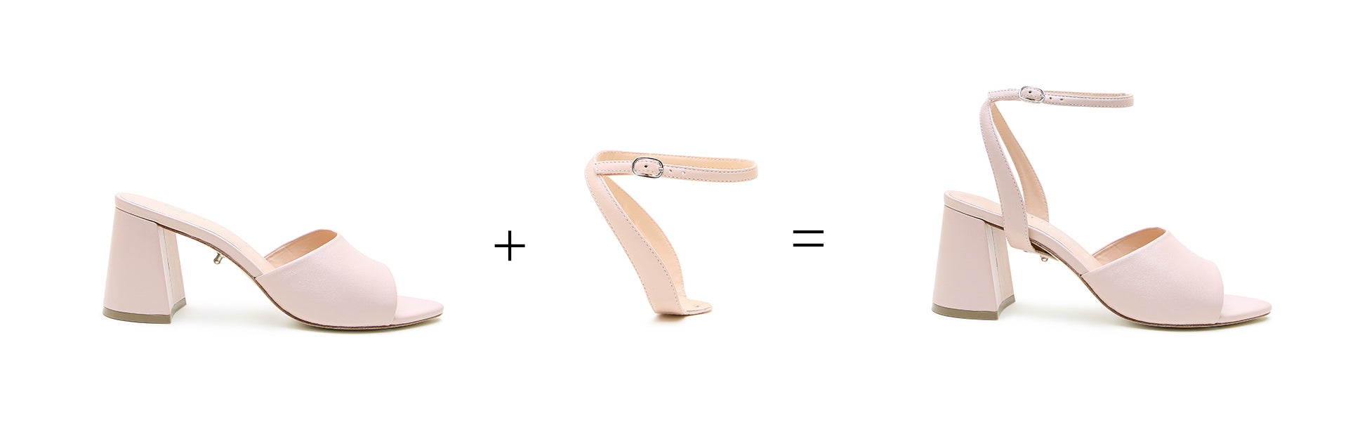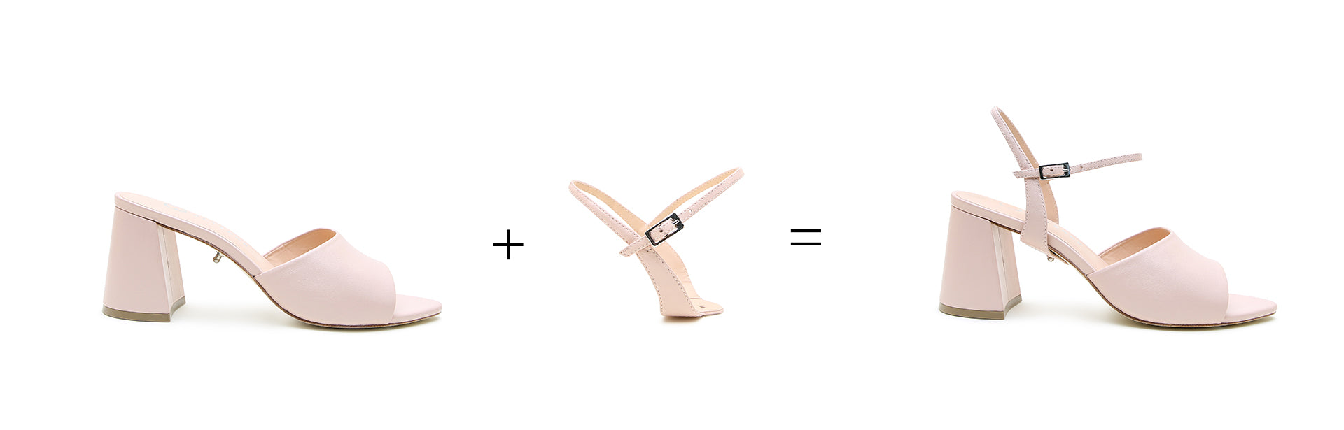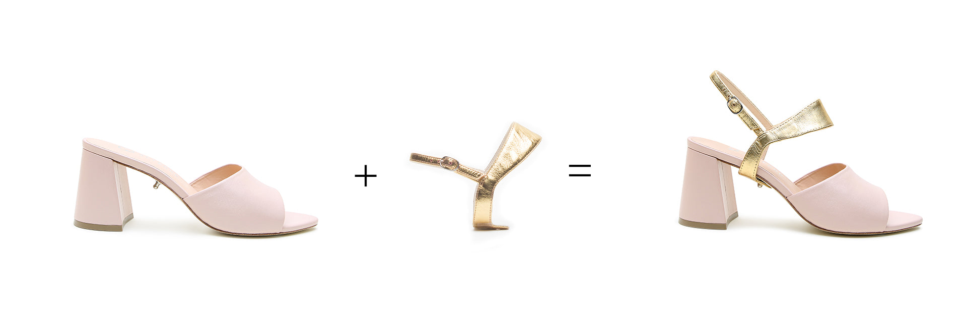 Just slip the strap over the heel of your shoe and push the hole down onto our patented stud. That's it!