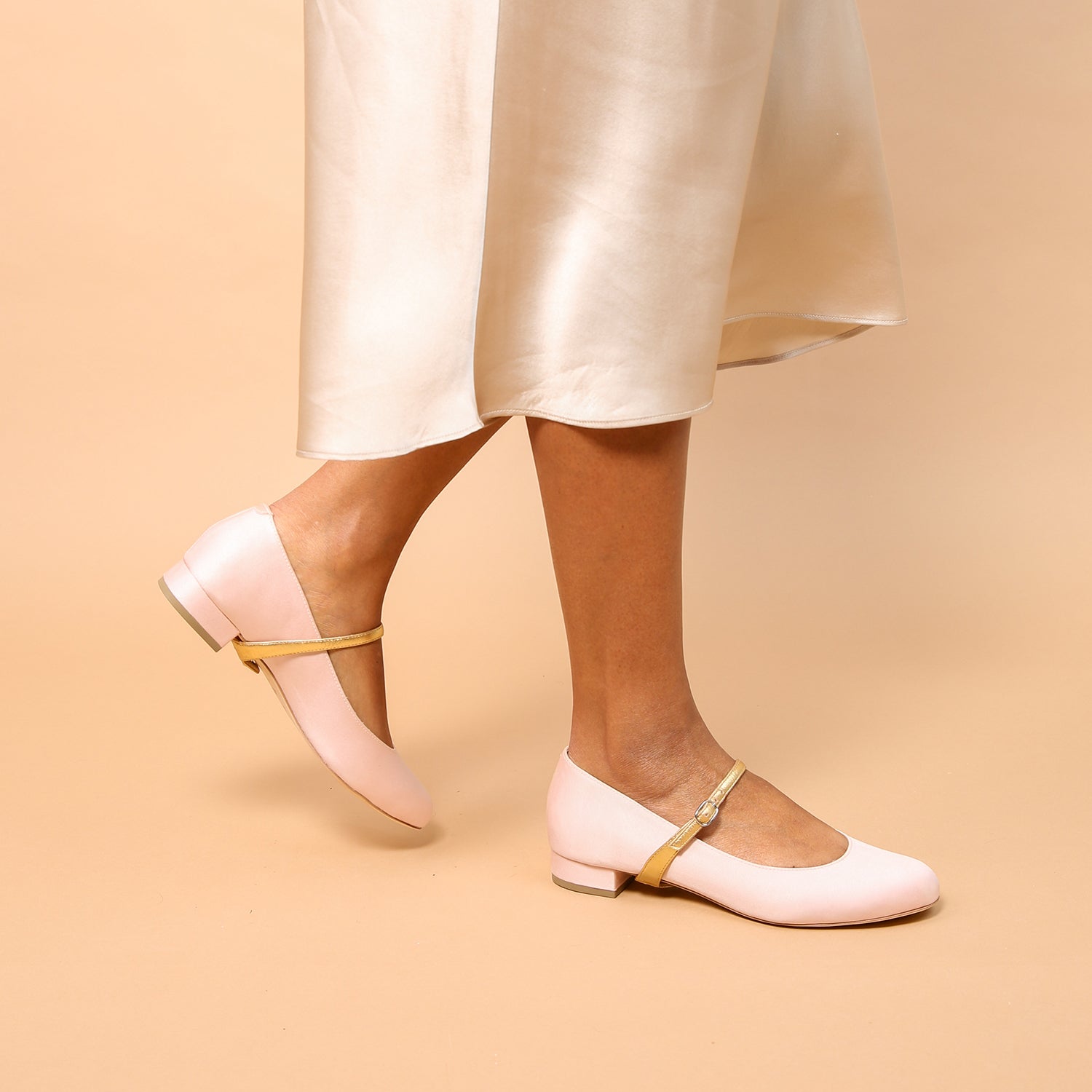 Rose Satin Ballet Flat + Gold Twiggy Strap