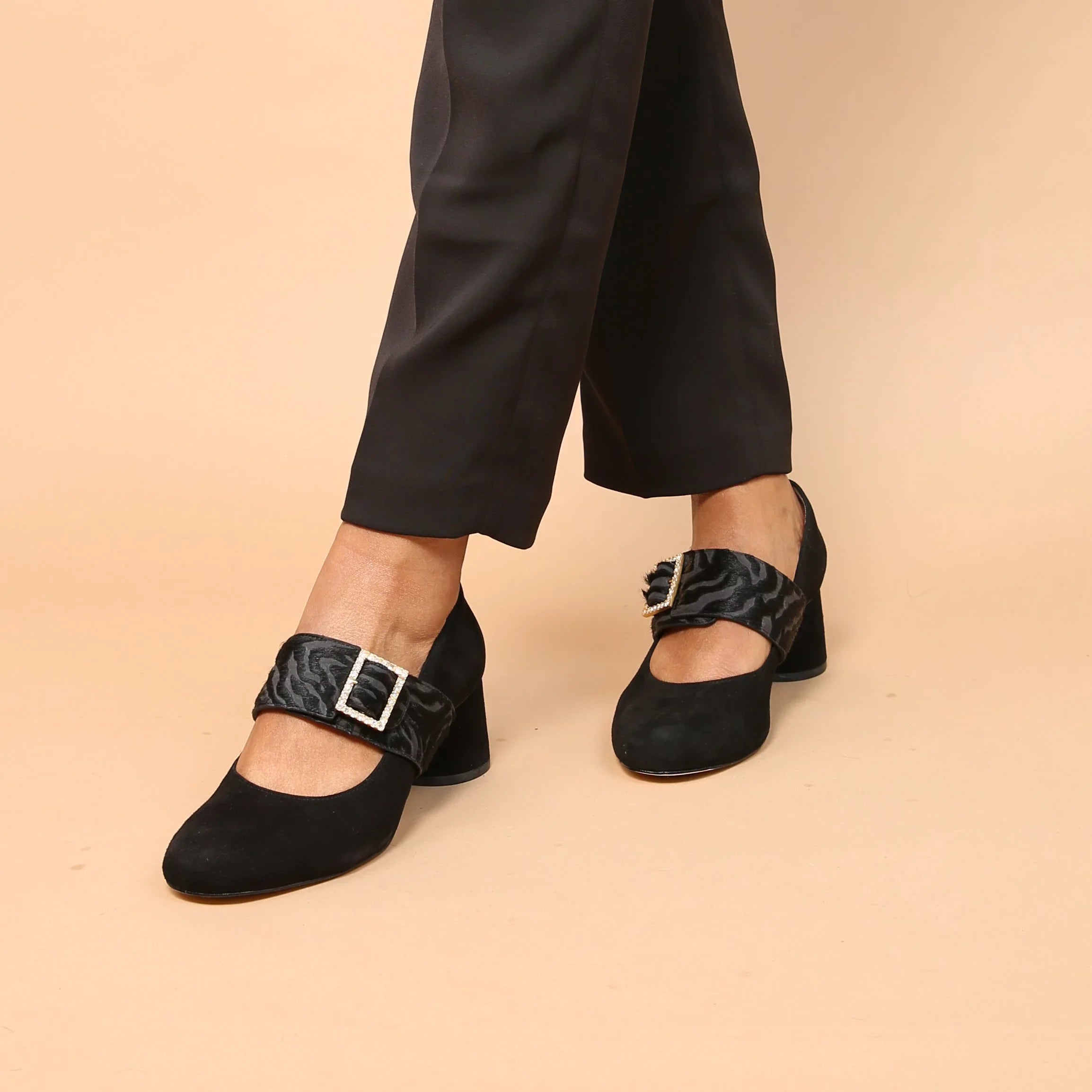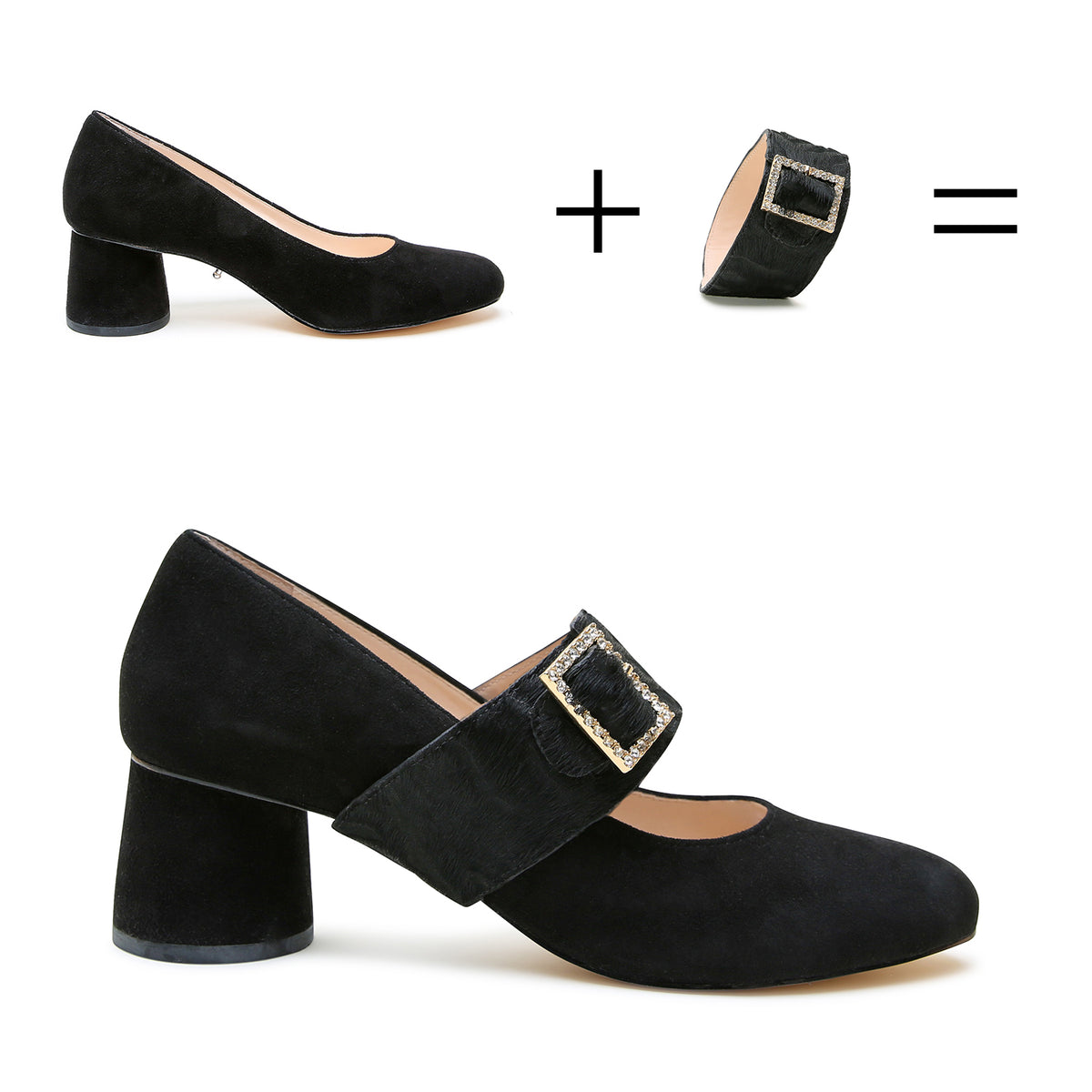 Black Suede Ballet Pump + Hairy Zebra Grace Strap