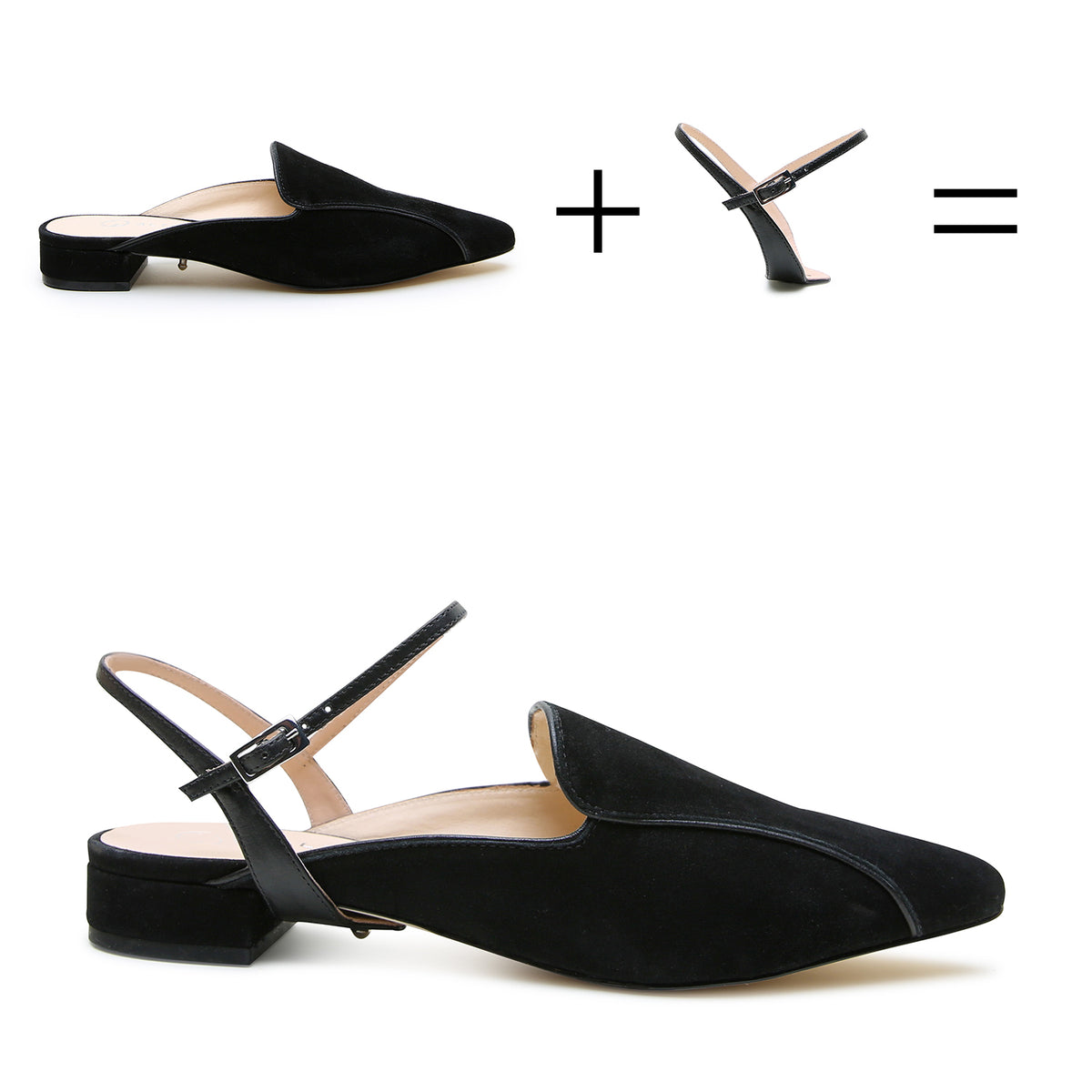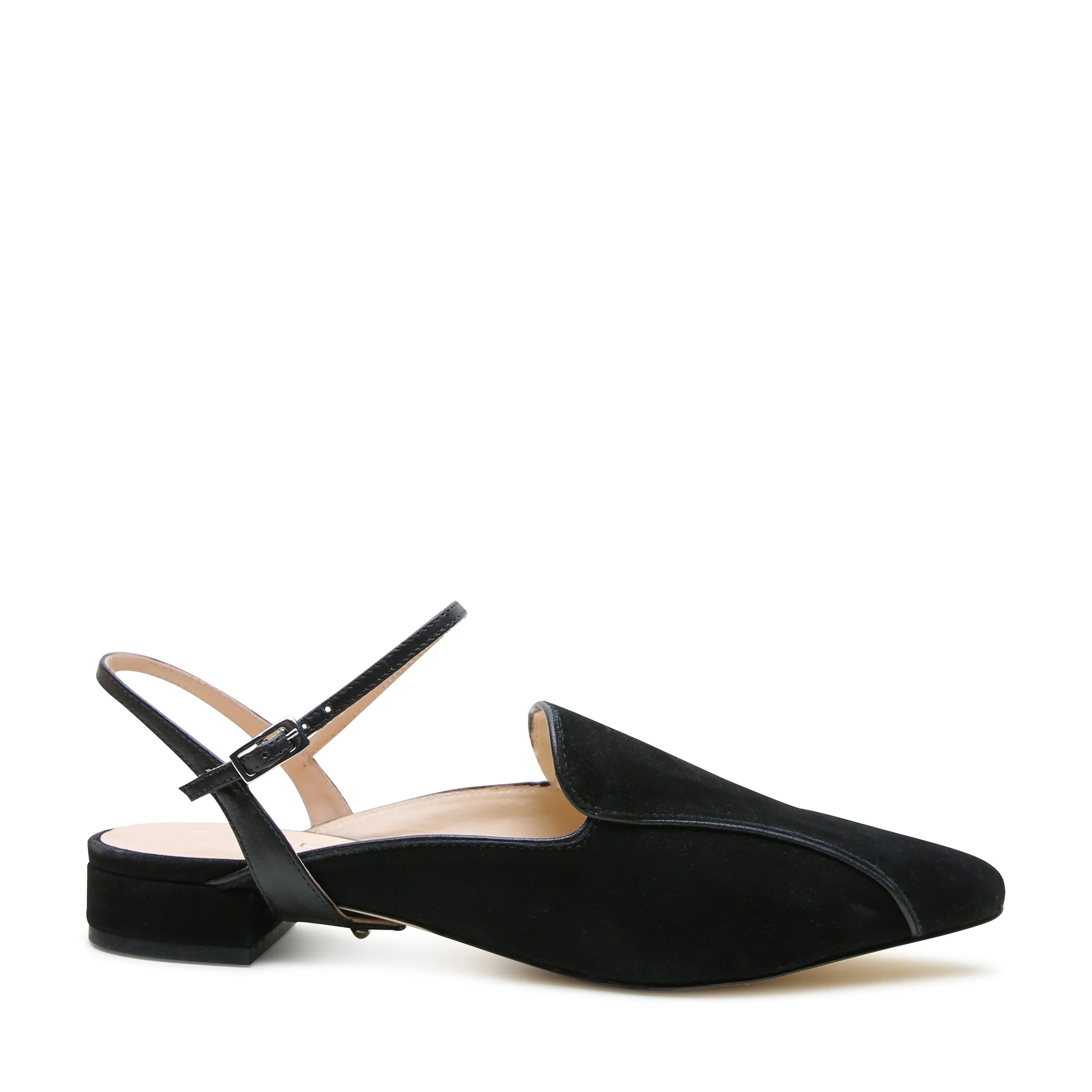 Black Suede Pointed Loafer + Black Amal Strap