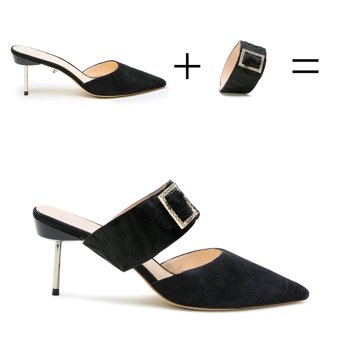 Black Suede Stiletto + Hairy Zebra Grace Strap