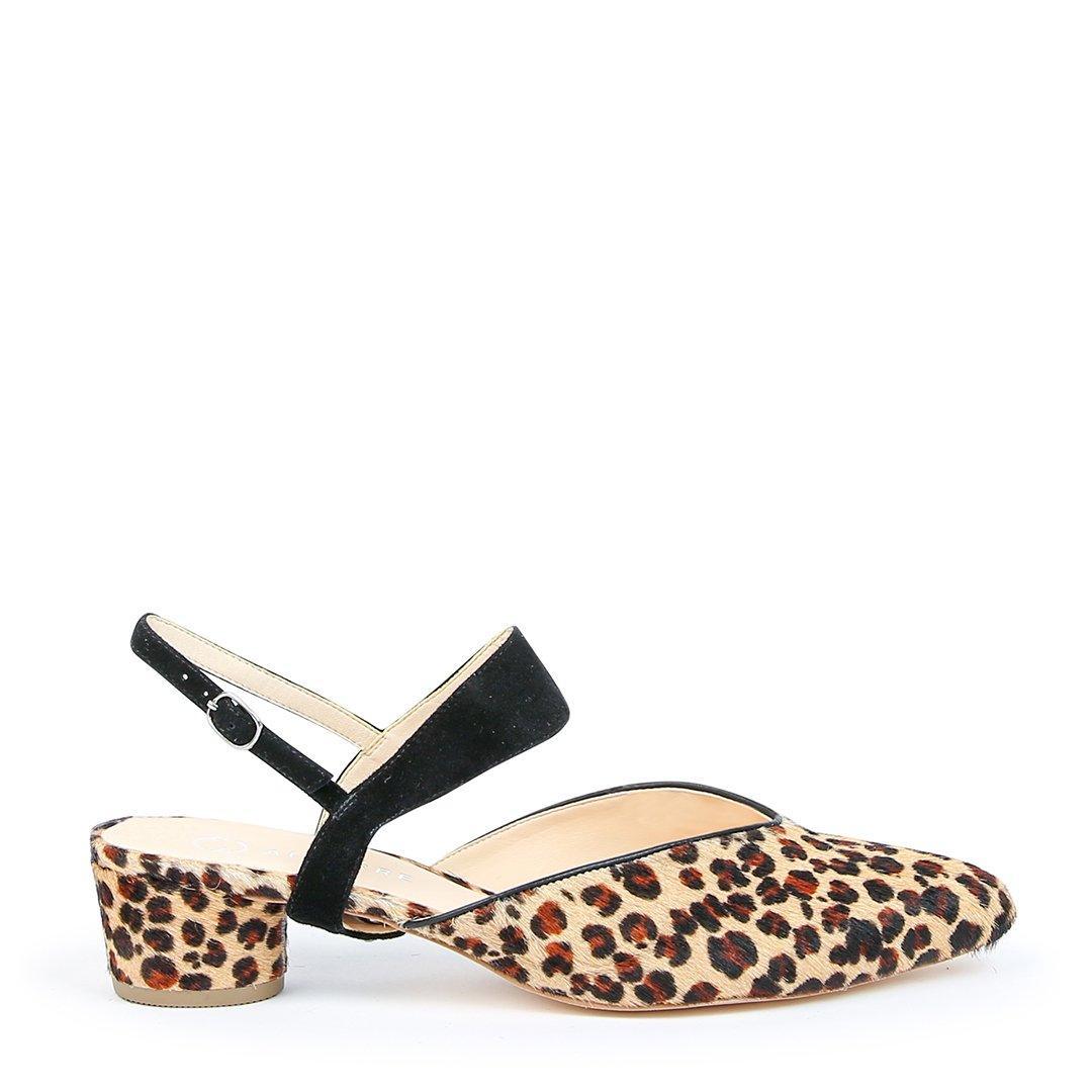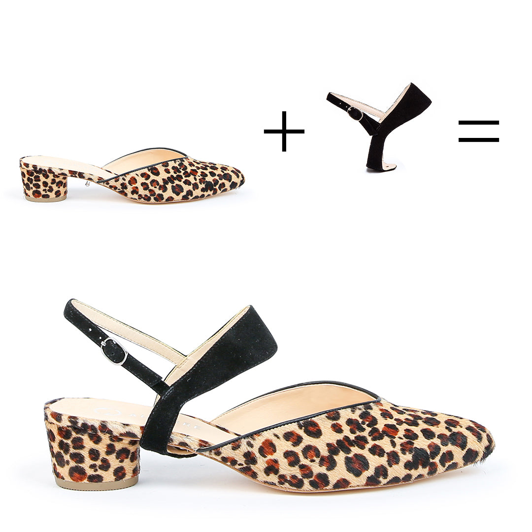 Claquette Léopard en V + Sangle Elsie en Daim Noir