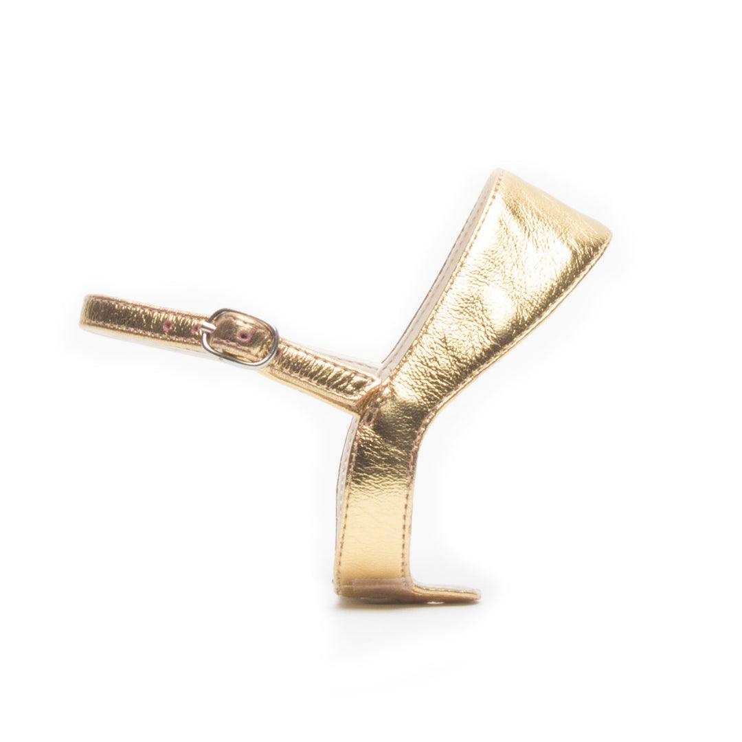One of our most versatile straps, the gold Elsie is a true chameleon. Pair this vintage inspired look with an evening gown or dress it down with capris for a bonfire on the beach. Strap shown on Doe Slide (sold separately).