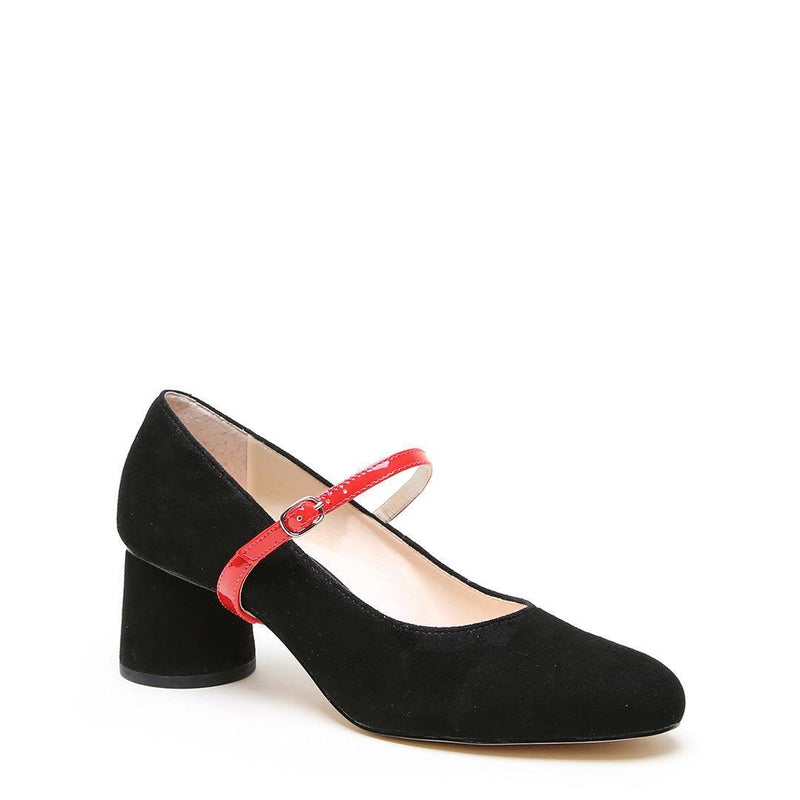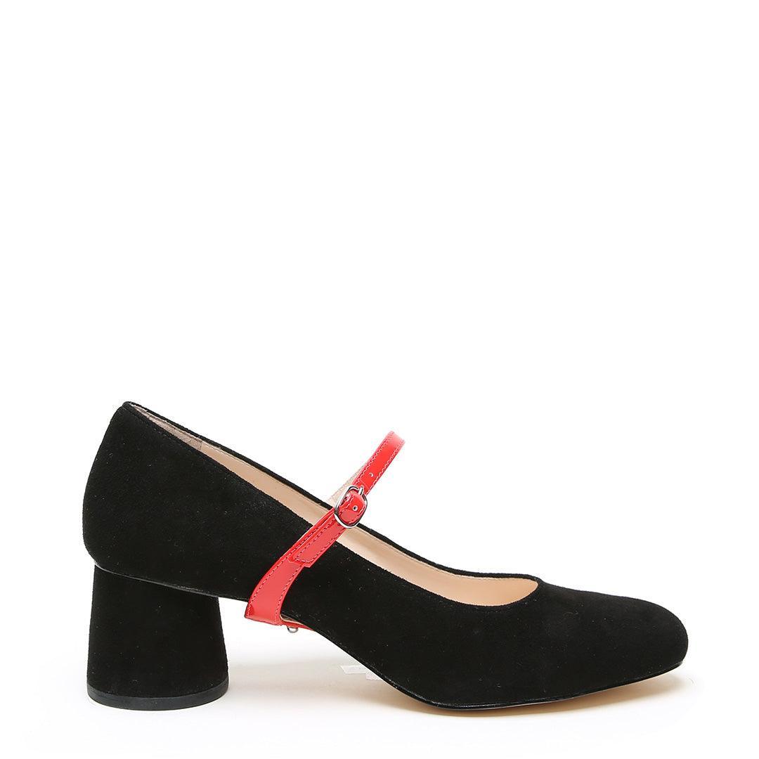 Bailarina Ante Negro + Correa Marie Terciopelo Rojo