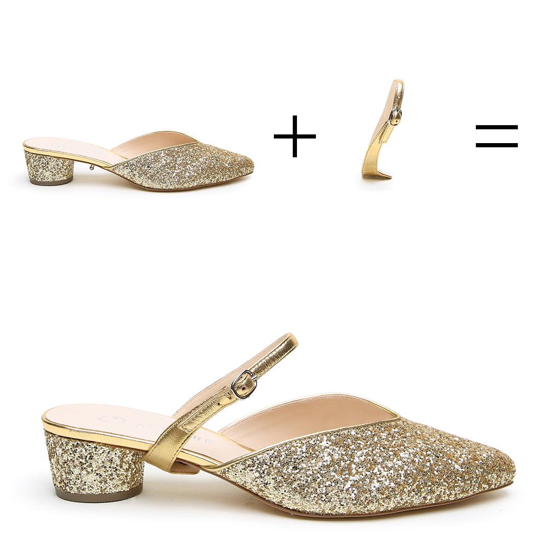 Gatsby Glitter V Slide + Gold Twiggy Strap