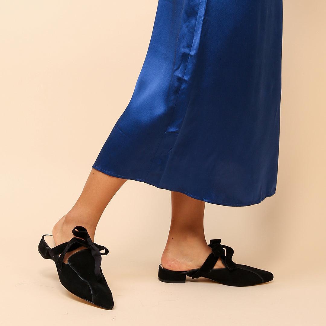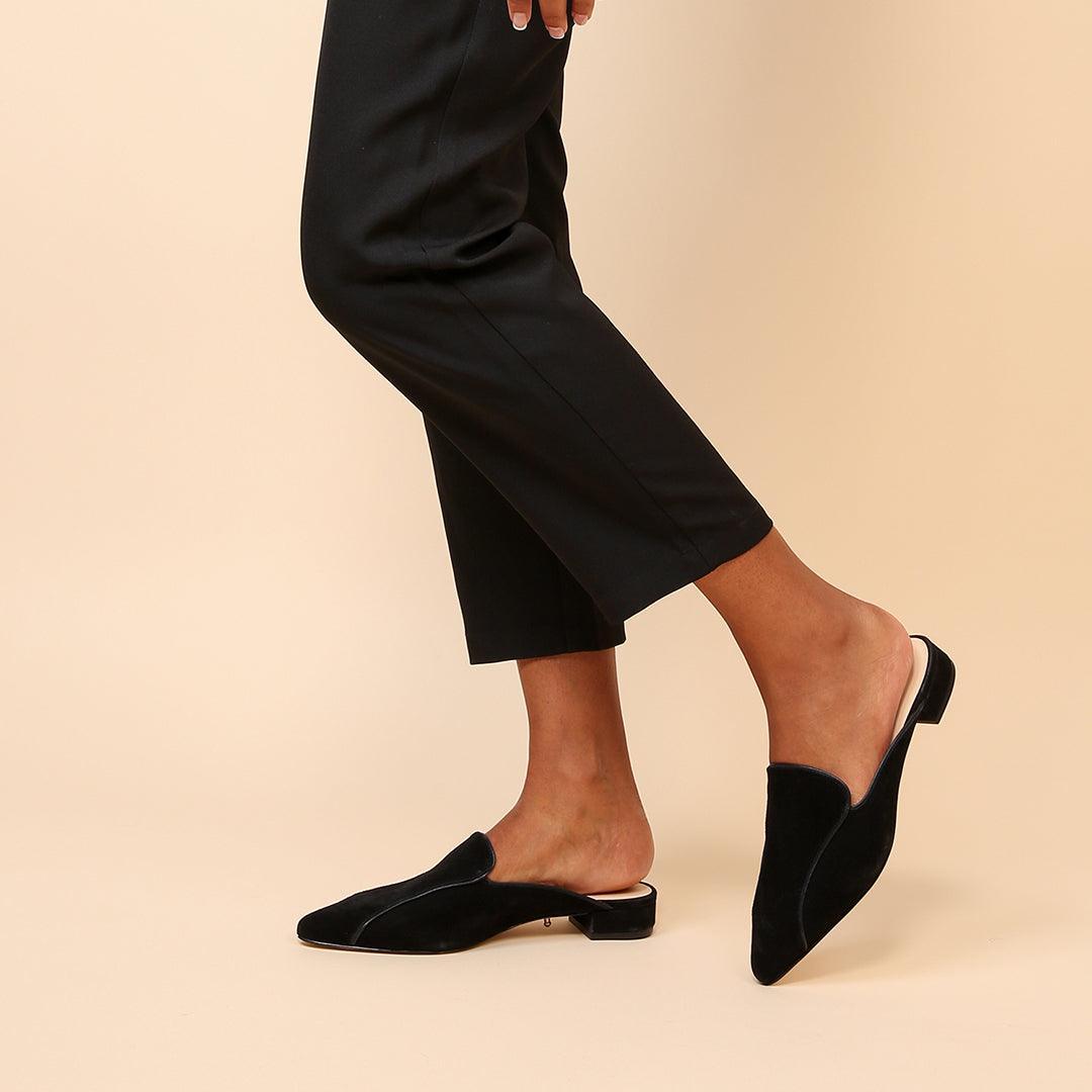 Chic pointed loafers with a detachable velvet Marie strap, named after voodoo queen Marie Laveau. To make these 2-in-1 shoes ultra comfortable, we even extended the point so your toes are not squished and dropped the heel lower than our classic slides and loafers.