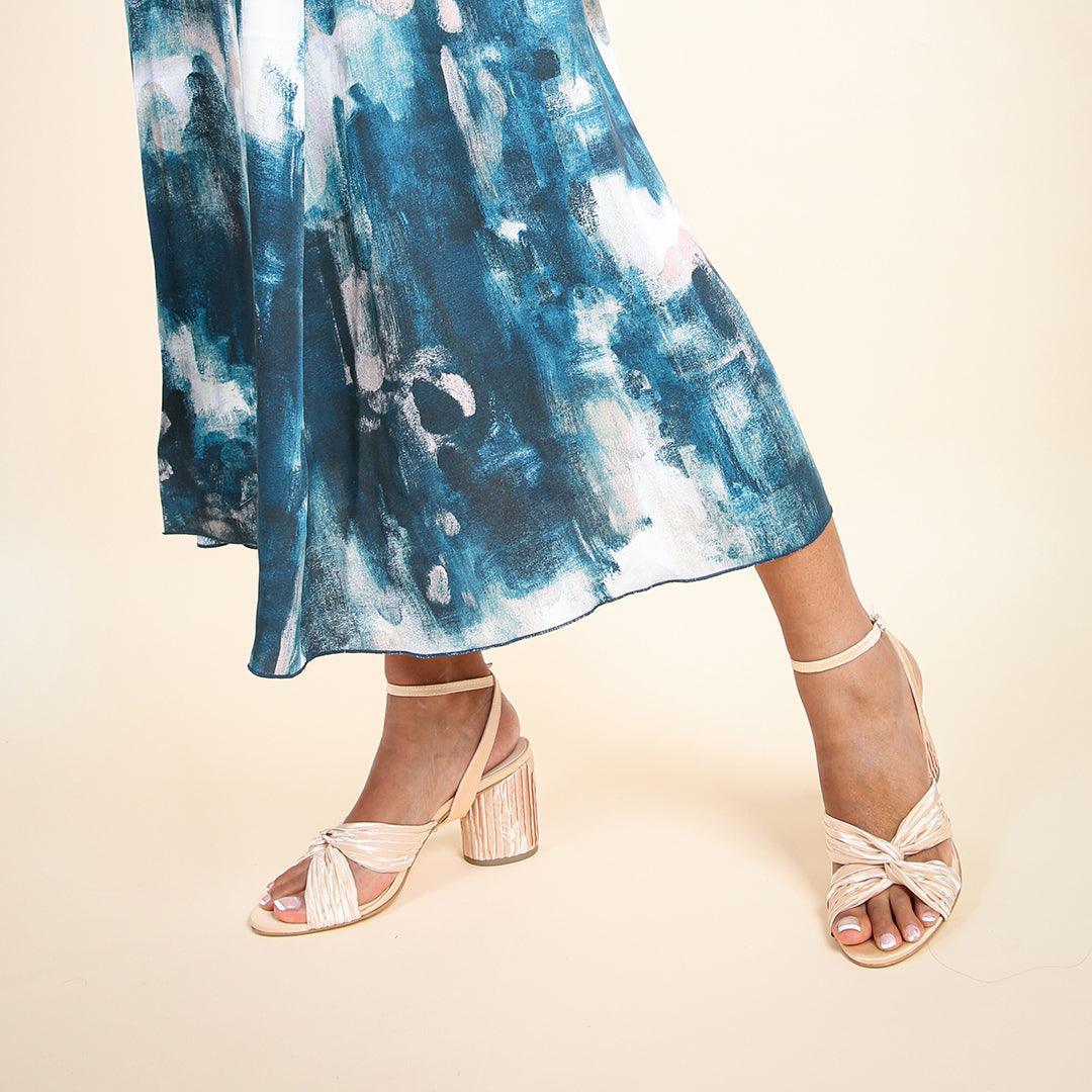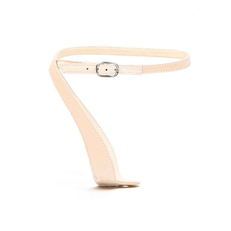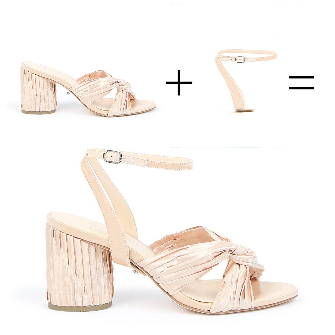 One of our bestselling cross-back straps in an elegant nude silk. Customize on our shoe bases with this detachable strap for a classic evening look. Shown on Nude Twist Sandal (sold separately).